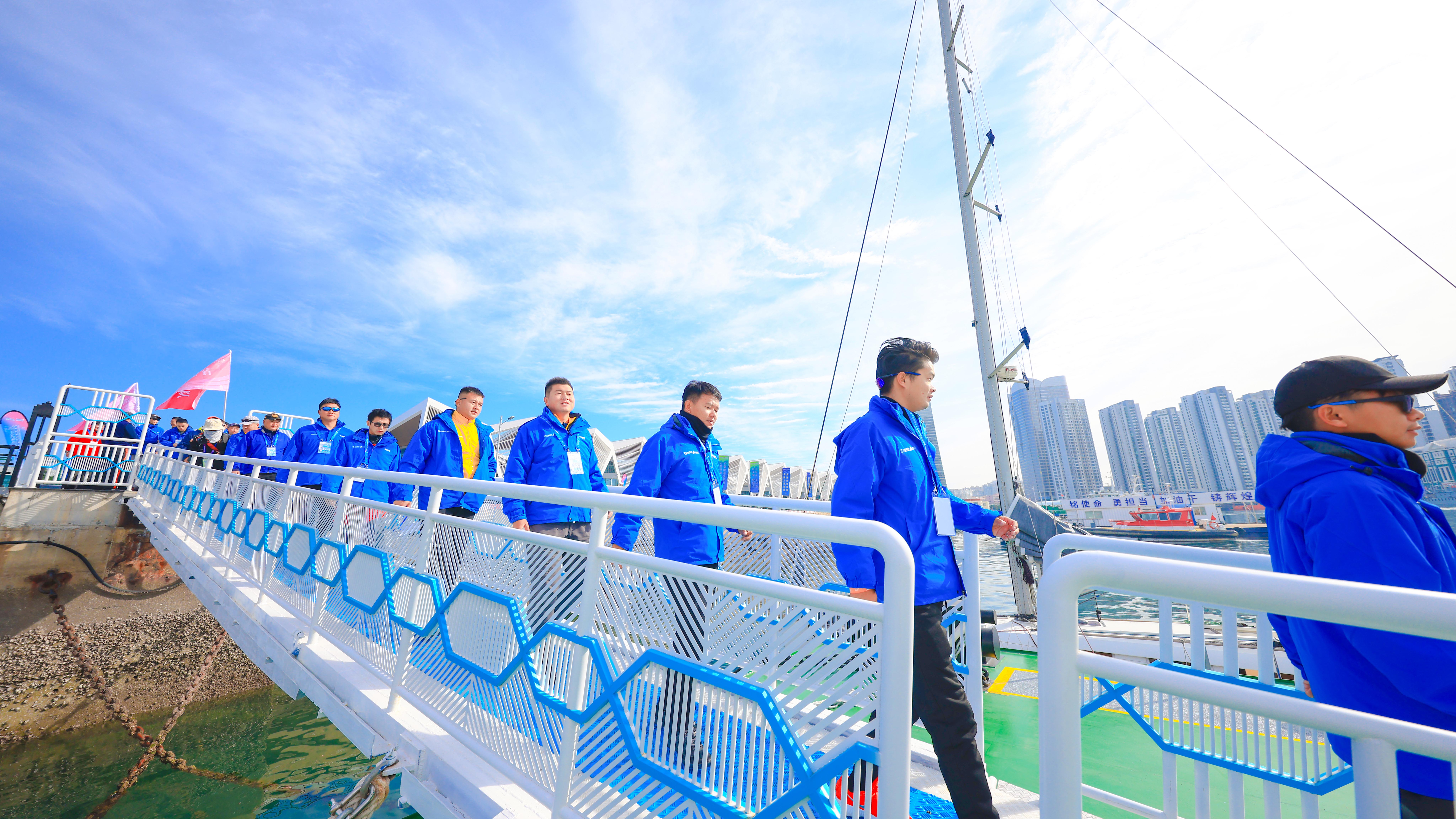 10月20日,2021“山东港口杯”仙境海岸半岛城市帆船拉力赛于青岛邮轮母港正式开赛。“可蓝高盖天然矿泉水”作为大赛指定用水,为赛事加油助力。